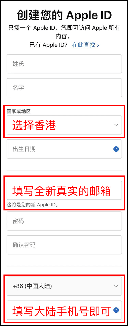 邮箱:需要准备一个从未注册过 Apple ID 的全新真实邮箱用来收取验证码;