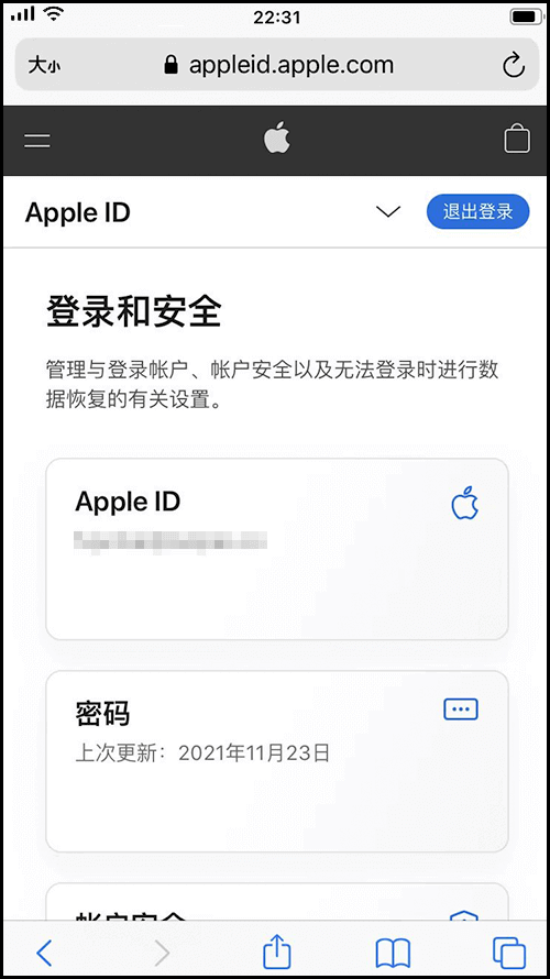 5. 当进入到登录和安全页面说明您的香港 AppleID已经注册成功了;