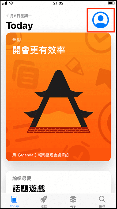 7. 下载完成后,在 App Store 中点击右上角图标然后滑倒底部登出账号;