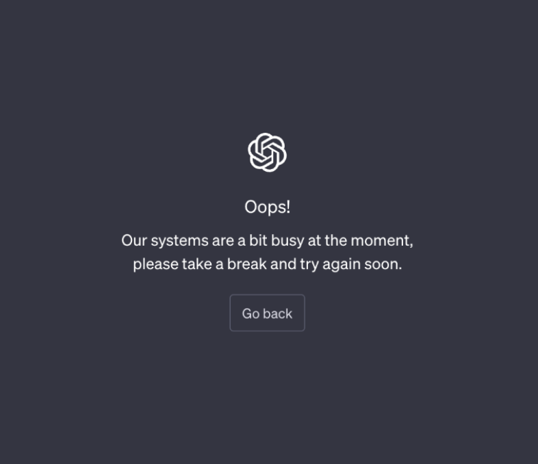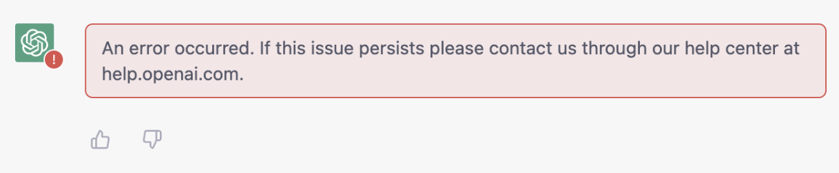 An error occurred. If this issue persists please contact us through our help center at help.openai.com.