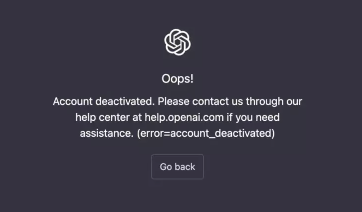 Account deactivated. Please contact us through our help center at help.openai.com if you need assistance. (error=account _deactivated)