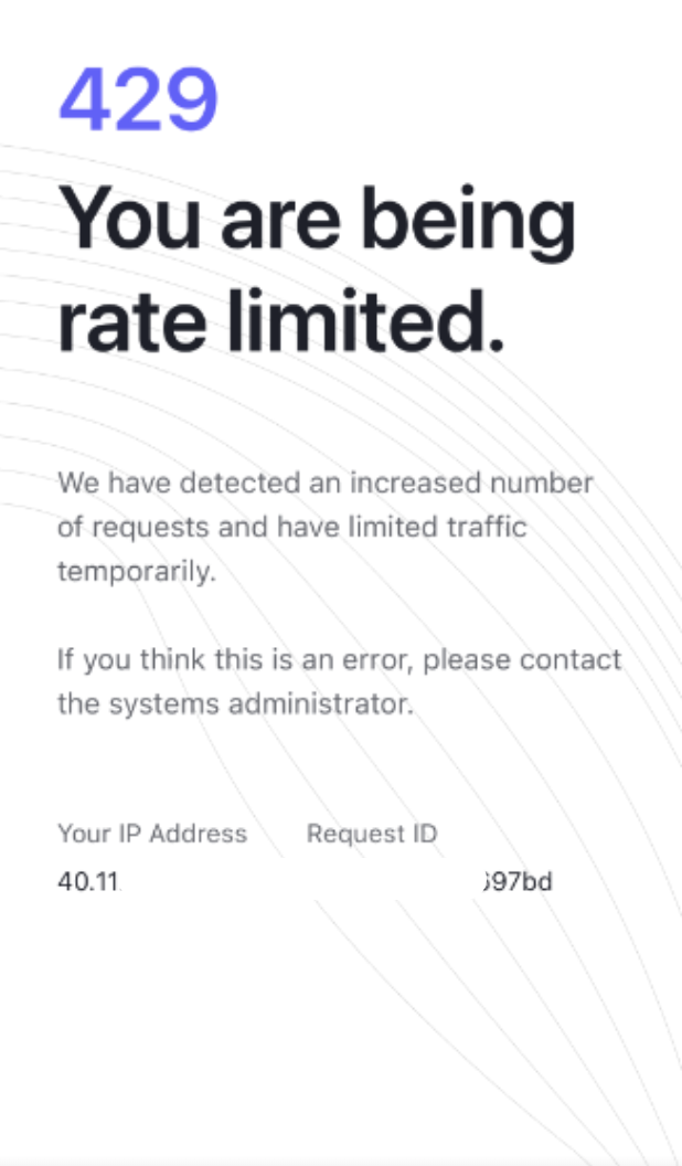 中文意思:你被限制了。 我们检测到请求数量增加,暂时限制了流量。 如果您认为这是一个错误,请联系系统管理员。