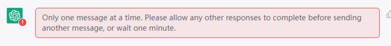 中文意思:一次只有一条消息。 在发送另一条消息之前,请等待任何其他响应完成,或者等待一分钟