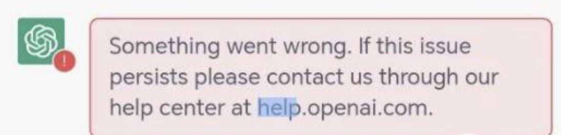 Something went wrong. lf this issue persists please contact us through our help center at help.openai.com.