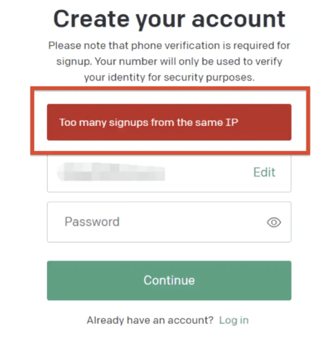 1.请确认 ChatGPT 账户是否完成了手机号验证