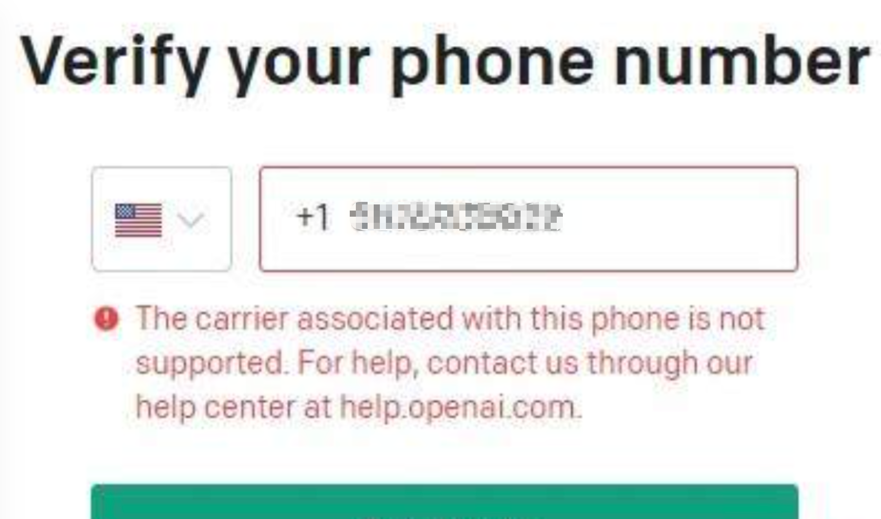 The carrier associated with this phone is not supported. For help, contact us through our help center at help.openai.com.